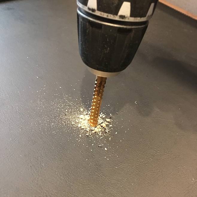새로 구입한 책상 상판 대신 만만한 서랍장 여기저기에 구멍을 뚫었습니다 ㅎㅎ