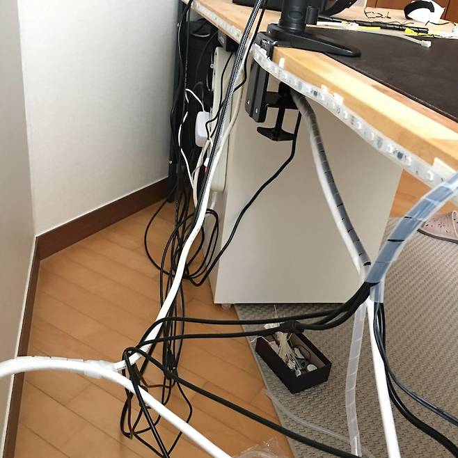이후에도 책상 위에 어쩔 수 없이 보이는 선 정리에 고민이 많았습니다.