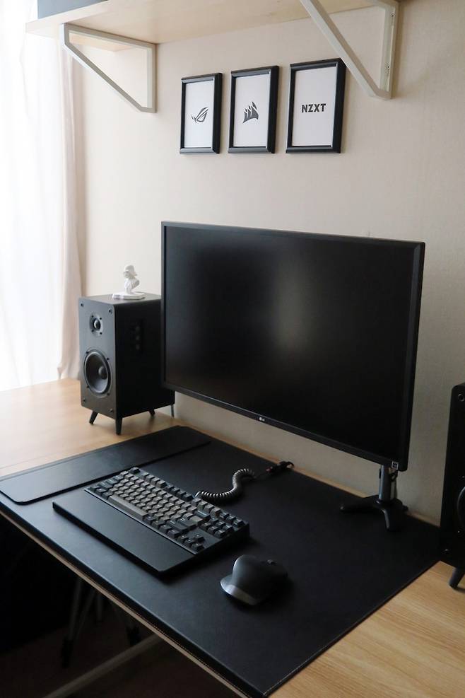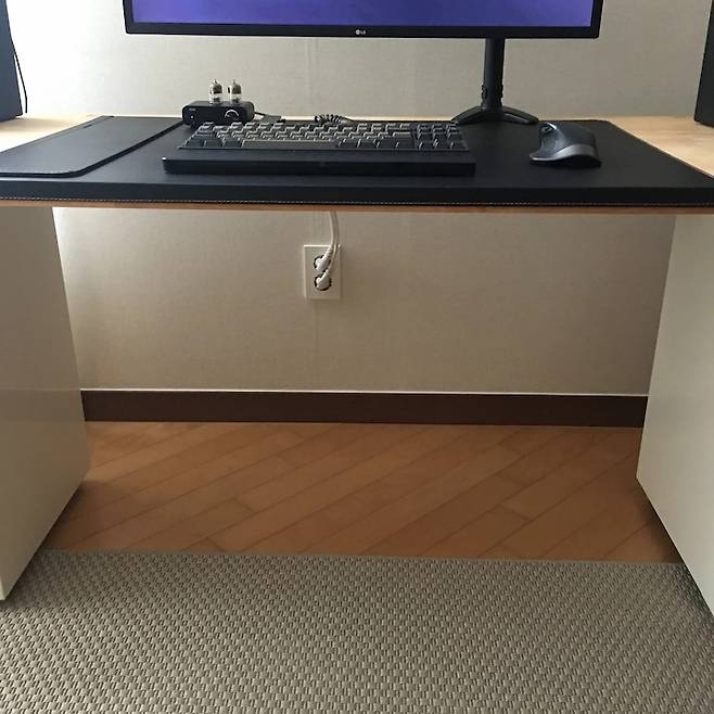 유선키보드와 유선마우스 등, 책상 위 선을 숨기고 싶을 땐 상판에 구멍을 뚫어서 선을 통과시키면 됩니다.