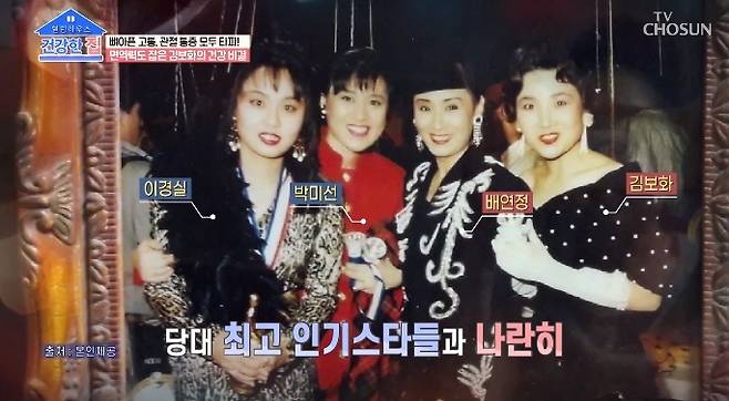 이날 김보화는 주현미, 김범룡, 조정현, 이경실, 박미선, 배연정 등과 어깨를 나란히 하며 찍은 과거 사진을 공개하기도 했다. (사진=TV조선 '건강한 집' 캡처)