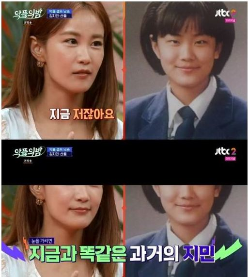 과거 김지민은 한 예능에 출연해 “데뷔 초 외모 콤플렉스 때문에 자존감이 낮았다”라고 고백한 적이 있는데요.