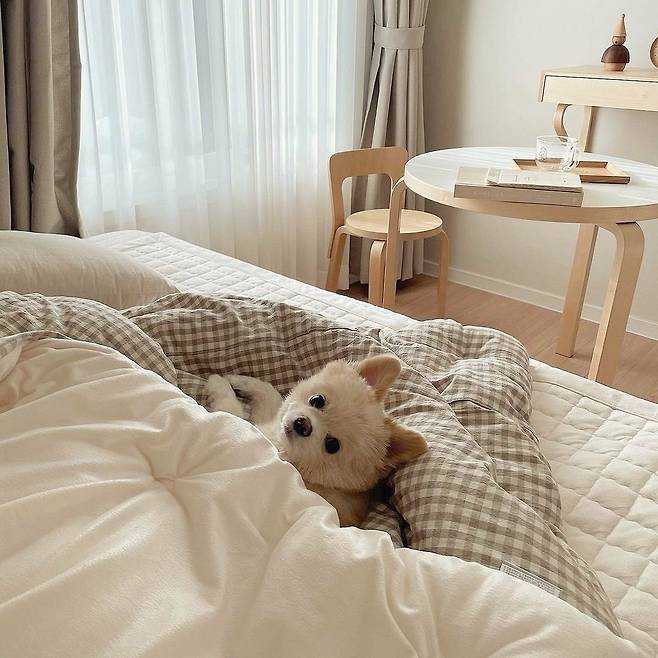 우드&화이트에 체크로 포인트를 주었습니다. 쉬는 날에는 방에만 온종일 있을 만큼 아늑하고 편해요 :)