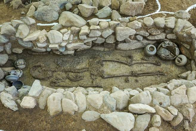 다른 유골들에 비해 20-30cm는 더 큰 유골이 관에 맞춰 기이하게 꺾인 채로 들어있었기 때문입니다. 무덤 안에 금세공품이나 무기 등이 없어 지배계급도 아니었고, 다른 160cm대의 유골들과 함께 전형적인 신라의 고분에서 나왔기 때문에 외국인도 아니었는데요.