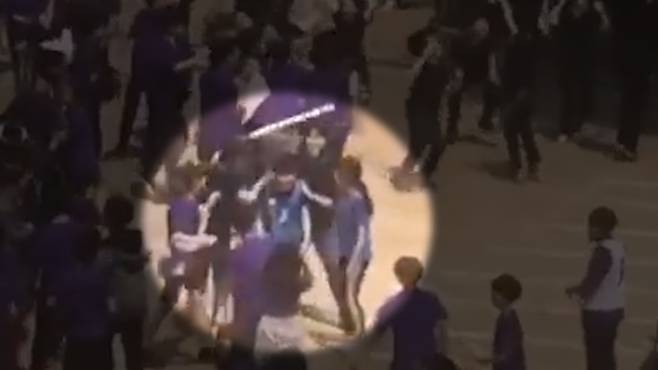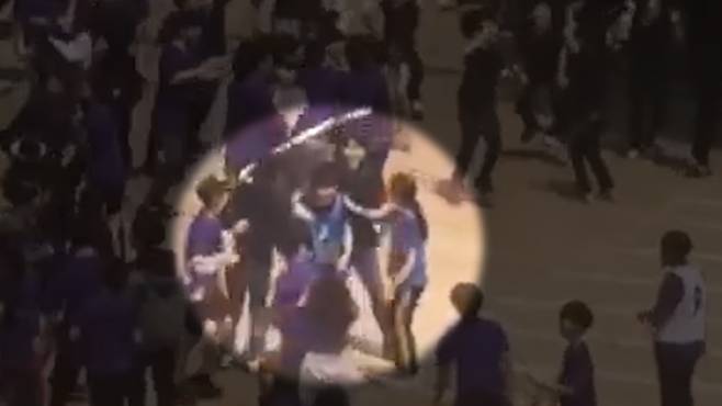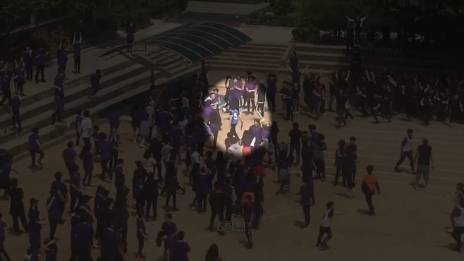 엎치락뒤치락을 반복하다 청팀이 앞선 상황에서 마지막 28번째 주자의 차례가 왔습니다. 그런데 마지막 반바퀴를 남기고 백팀의 마지막 주자가 역전에 성공합니다. 그곳에 있던 학생들은 모두 백팀의 마지막 주자에게 달려가 환호하며 기뻐했죠.