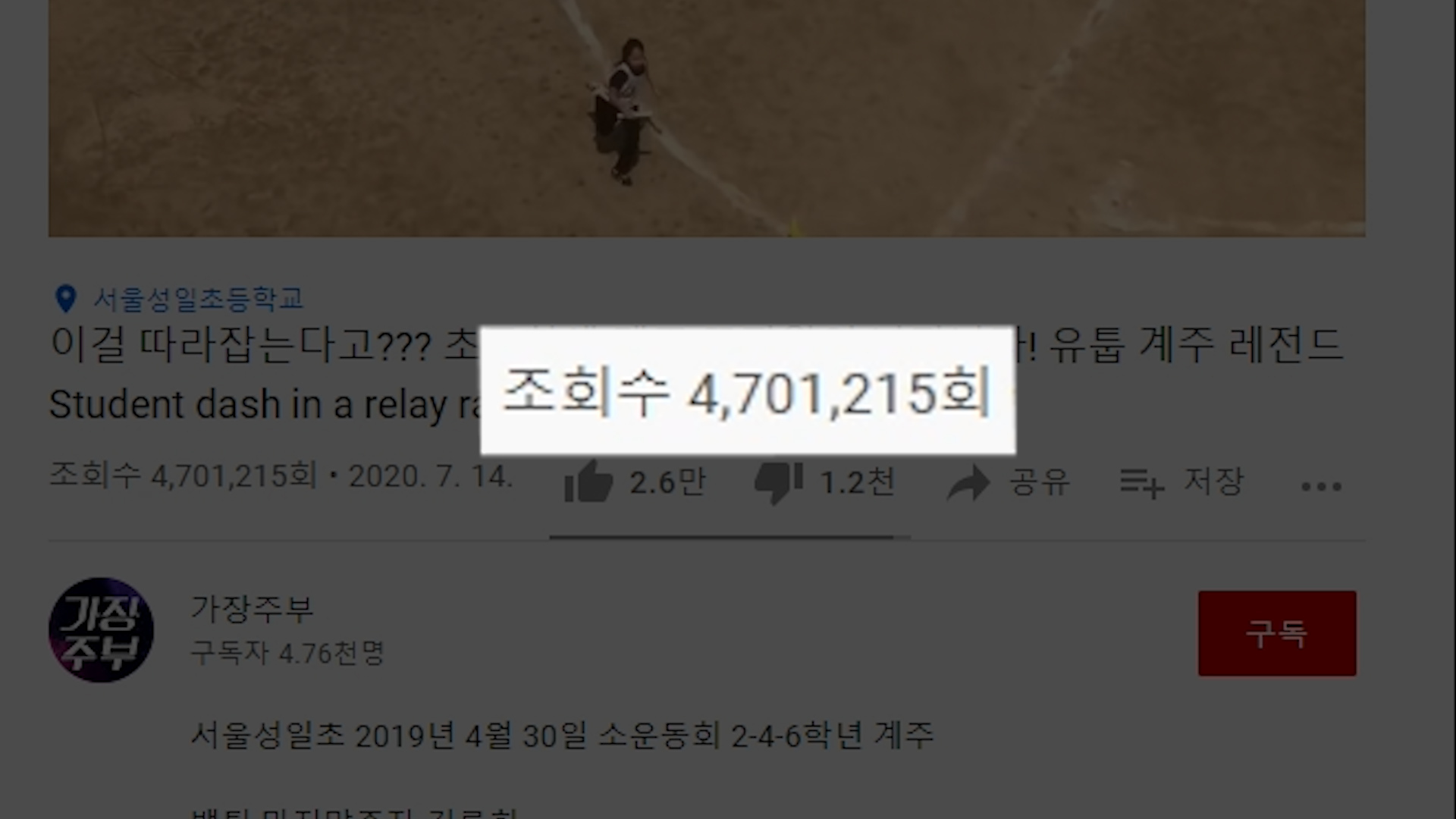 이 영상은 유튜브 채널 ‘가장주부’에 작년 7월 올라왔지만 운동회는 코로나 이전인 2019년 4월에 서울 성일초등학교에서 열렸습니다. 2학년 4학년 6학년 아이들이 차례로 바통을 넘겨받으며 달리기를 이어갑니다.