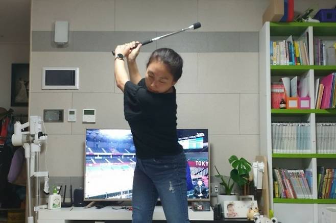 스윙 연습기가 늘어났을 때, 소리와 함께 감각으로