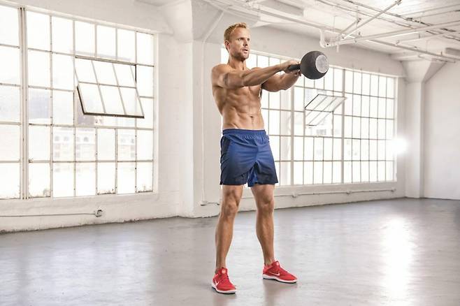 이번 프로그램은 피어도스 칸이 개발했다. 그는 휴스턴에 위치한 운동선수 트레이닝 기관인 ‘나인 이노베이션’의 수석 트레이너이다(ixinnovate.com). 칸은 케틀벨 하나만 활용하면 되는 2개의 프로그램을 만들었다. 하나는 30분 프로그램, 또 하나는 15분 프로그램이다. “두 프로그램은 시간과 장비의 제한을 겪고 있는 개인에게 완벽한 운동이 되어줄 겁니다.” 칸이 말했다. “당신의 모든 근육이 동원되며, 신진대사율도 지붕을 뚫고 올라갈 거예요. 코어도 단련할 수있고요.”