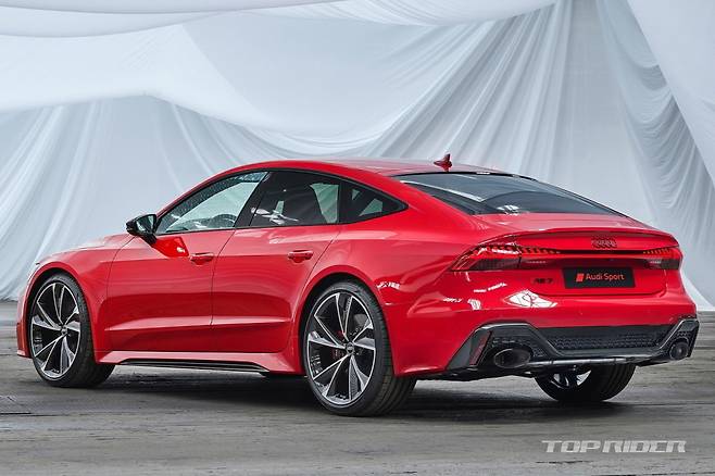 RS7는 4.0리터 V8 TFSI 엔진과 8단 팁트로닉 변속기가 조합됐다. 최고출력은 600마력, 최대토크는 81.6kgm다. 정지상태에서 100km/h까지 3.6초, 최고속도는 305km/h다. 복합연비는 7.4km/ℓ다. 사륜구동, DRC를 포함한 RS 스포츠 서스펜션 플러스가 기본 사양이다.
