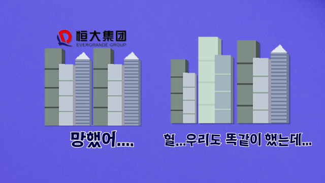 문제는 이 과정에서 부동산 시장이 과열되는 건 물론이고 부동산 개발업체들이 부채를 무리하게 끌어다 쓰게 됐습니다. 엄청난 빚을 내서 산 땅에 건물을 짓고, 그걸 담보로 또 대출을 받아서 다른 곳에 땅을 사고 건물을 짓고, 이 과정을 수없이 반복했죠.
