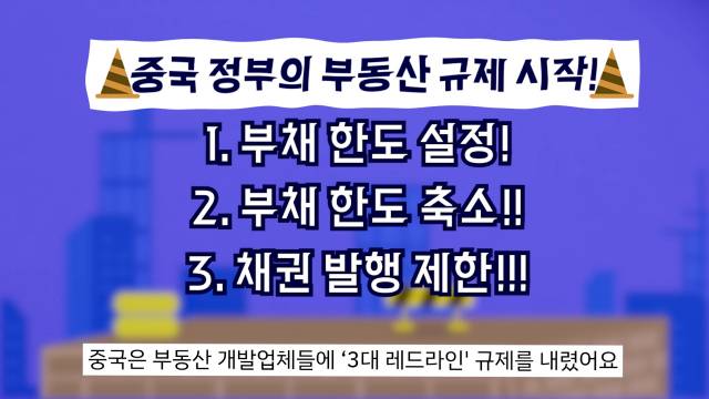 파산 위기가 온 직접적인 이유는 중국 정부가 부동산 업계에 대한 규제를 바짝 조였기 때문입니다. 시진핑 주석은 공동부유, 그러니까 다 함께 잘 먹고 잘살자는 정책을 밀고 있는데요. 잘 사는 사람은 더 잘 살고, 못사는 사람은 더 못살게 된 이유 중 하나가 ‘부동산 시장의 과열'이라고 봤습니다. 이에 따라 중국 정부는 지난해 부동산 시장 안정화를 위해 개발업체들을 대상으로 부채 한도를 설정하고, 축소를 요구하고, 심지어 채권 발행까지 제한하는 ‘3대 레드라인' 규제를 내렸어요.