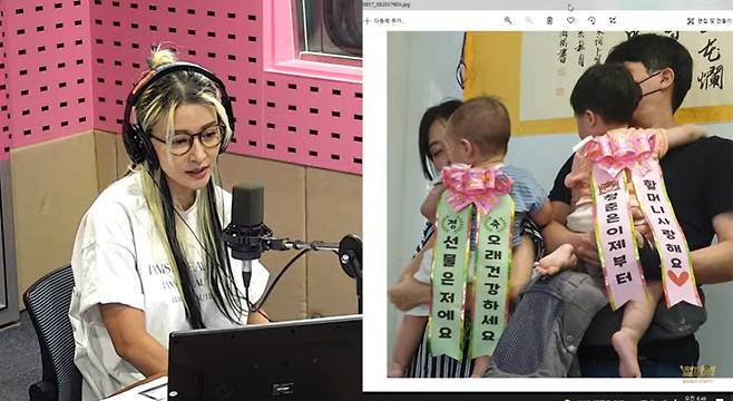 한 청취자는 "10년간 아이가 안 생겼는데 시험관으로 낳은 쌍둥이가 어머니 생일 때 화환으로 변신했다. 어머니가 너무 좋아하셨다"며 사진을 보냈다.