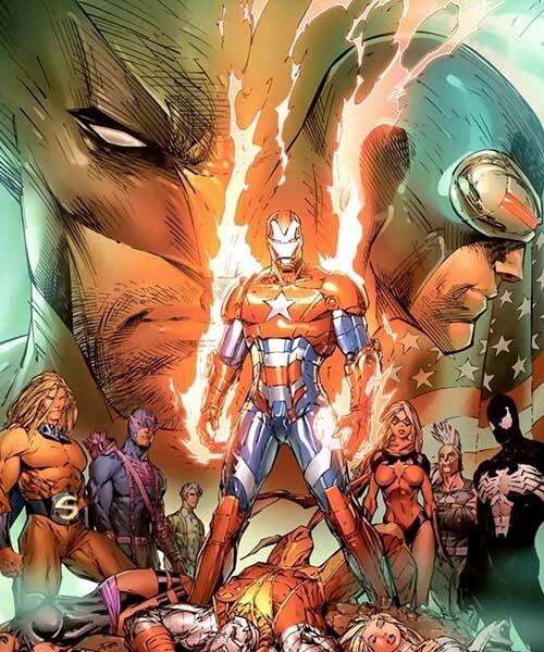 기존 어벤져스 멤버였던 아레스와 센트리를 포함한 뒤 오스본 자신은 강탈한 아이언맨 슈트를 개조해 스스로 아이언 패트리어트가 되었다.