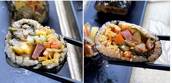 고등어 김밥은 두 가지 종류다. 양념을 고추장으로 하는 김밥과 간장 마요네즈로 하는 김밥이 있다. 당연한 말이지만 취향 따라 선택하면 된다. 짠맛이 좋다면 고추장을 선택하면 된다. 느끼한 맛이 당긴다면 마요네즈다. 간장 마요네즈 김밥과 유사한 맛을 내는 김밥을 제시하자면 참치마요 김밥을 떠올리면 되겠으나, 똑같지는 않다. 잘 익힌 고등어구이를 가시 하나 없이 잘 발라서 만든 퓨전 김밥이라고 보시면 되겠다. 제육김밥이나 돈까스김밥처럼 푸짐하게 배를 채울 수 있다. 욕지도에서 먹을 수 있다.