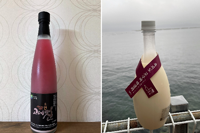 욕지도에서 키우는 자색 고구마를 원료로 삼아 빚은 막걸리다. 고구마 막걸리라고 해서 군고구마의 달콤함을 떠올려서는 곤란하다. 욕지도에서 파는 고구마 막걸리는 두 종류인데, 둘 다 소량만 생산해서 일일 생산량이 많지 않다. 오후 늦게 방문했다가는 못 살 확률이 높다. 맛은 상대적으로 욕지도고구마막걸리가 보편적인 막걸리에 가깝다. 고메진 막걸리는 색깔만 봐서는 요거트 맛이 날 거 같지만, 마셔보면 아주 시큼하다. 호불호가 상당히 갈린다.