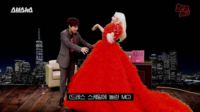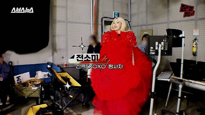저런 옷은 어디서 구해ㅋㅋㅋㅋㅋ 빨간 드레스로 SBS 로비에서 출근하는 사람들 깜짝 놀라게 한 소미^^