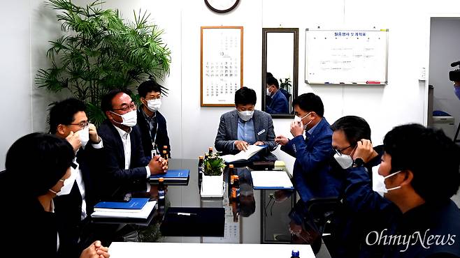 | ▲ 전국금속노동조합 경남지부 지에이산업분회는 18일 경남도청에서 GA산업 대주주인 (주)에스에이에프, (재) 경남테크노파크 항공우주센터와 “지에이산업 장기농성 해결을 위한 공동선언문”에 합의했다. |