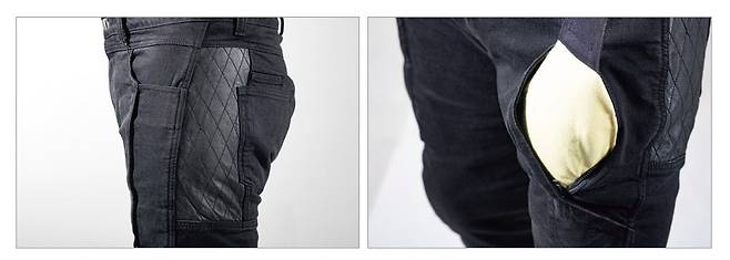 라이더라면 생지 데님 스타일의 슬림 스트레이트 핏은 하나쯤 있어야지. 프로텍터는 없지만 마찰에 강한 듀폰 케블라를 사용해 최소한의 안전은 챙기고 있다. 따로 보호대가 없다보니 편안한 착용감과 일상생활에서 착용해도 될 정도로 스타일리시하다. 그래서 클래식 라이더의 도심 속 데일리 팬츠로 추천하고 싶다.