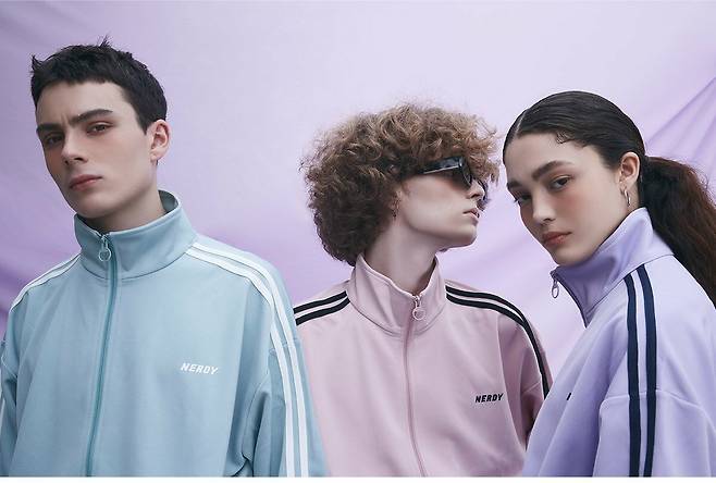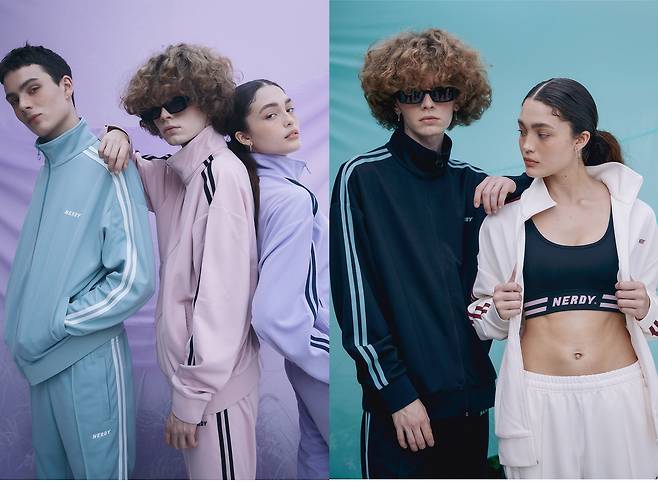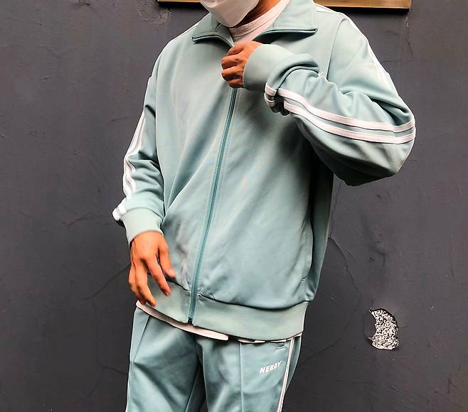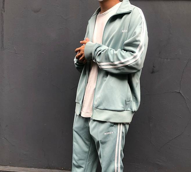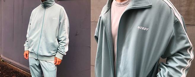 트랙탑과 트랙팬츠 왼쪽에는 NERDY 로고가 들어가있어서