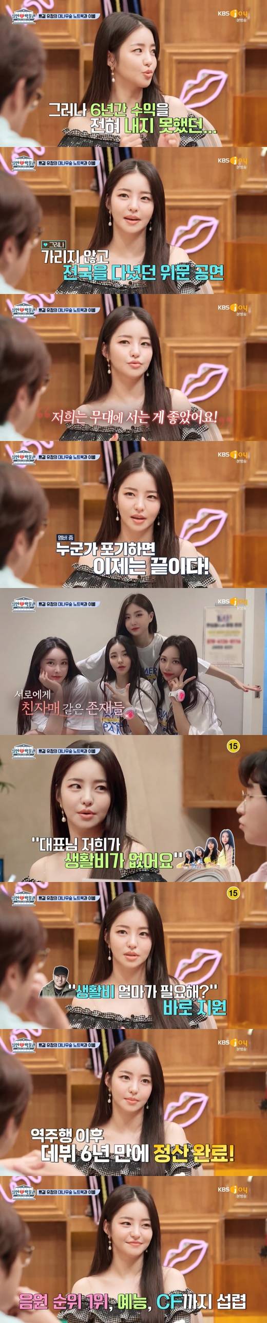 이어 "군부대 위문 공연으로 해서 벌이가 되지 않았다. 멀기도 되게 멀다. 그런데 저희는 무대에 서는 게 너무 좋았다. 누구 하나가 포기를 하면 끝이란 걸 알았다. 그래도 넷이 뭉쳐서 '무대 하나라도 더 하자, 앨범 하나라도 더 내자'라는 게 있었다"라고 전했다.