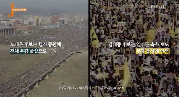 | ▲ 1987년 대선 당시 KBS는 민정당 노태우 후보 유세장면엔 상당한 비중을 들였던 반면 평민당 김대중 후보에겐 인색했다. |