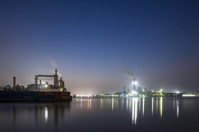 갯내음 가득한 원초적 바다와 산업단지의 오묘한 조합이 이색적인 북성포구. 밤새 돌아가는 간척지 공장의 굴뚝엔 어둠을 희미하게 적시는 흰 연기가 품어져 나오고, 공장을 밝히는 작은 불빛들은 바다 위에 드리워져 길고 낮은 빛의 반영을 만든다. 잔잔하게 일렁이는 수면 위에 넘칠 듯 찰랑이는 빛의 움직임은 유일하게 멈춘 적 없는 쇠퇴한 부둣가의 가락이 됐다.