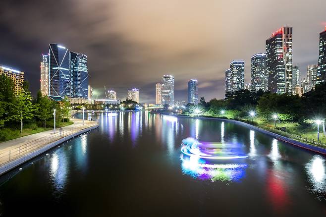 | ▲ 밤이 되면 마천루의 불빛이 뿜어내는 송도의 풍경은 특별하다. G타워부터 동북아트레이드타워까지 길게 이어진 센트럴파크의 물길은 화려한 네온사인을 품고 어둠을 유유히 유영한다. |