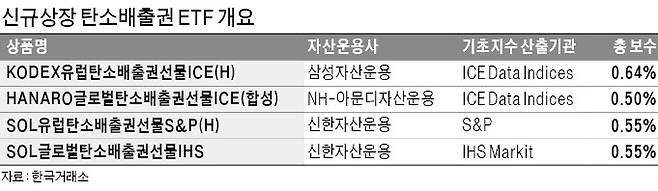이날 삼성자산운용, NH-아문디자산운용, 신한자산운용은 각각 탄소배출권에 투자하는 ETF를 내놨다.