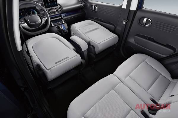 캐스퍼는 1ㆍ2열 전 좌석에 폴딩, 슬라이딩, 리클라이닝 기능을 적용했다. 특히 세계 최초로 운전석 시트가 앞으로 완전히 접히는 풀 폴딩(Full-folding) 시트를 적용한 점이 눈에 띈다. 2열 시트는 최대 160mm 앞뒤로 이동할 수 있고 최대 39도로 젖힐 수 있다.