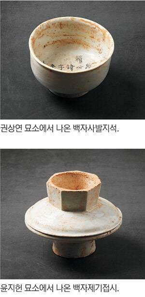 초남이 바우배기 성지화 작업을 추진해오던 전주교구는 8기의 무연고 분묘를 개장했는데, 올해 3월에 3호 무덤과 5호 무덤에서 유해와 유물이 출토됐다. 이들 무덤에서 각각 출토된 백자사발지석(誌石)의 명문을 판독하니 윤지충, 권상연에 대한 기록임을 확인했다.