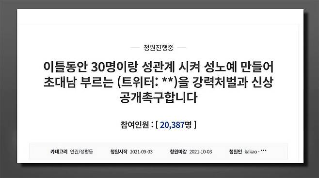 2주 전 청와대 국민청원에 한 트위터를 처벌해 달라는 글이 올라왔습니다.