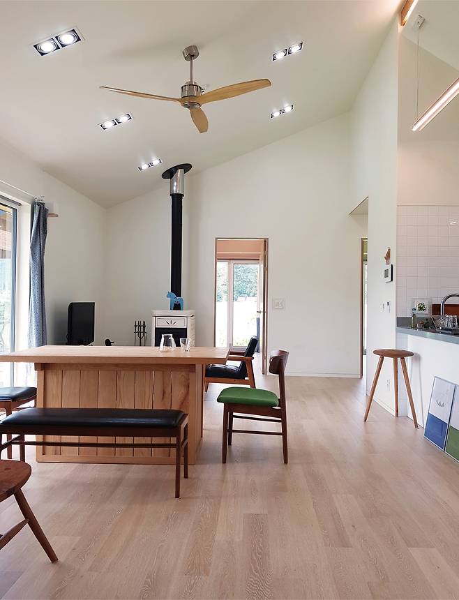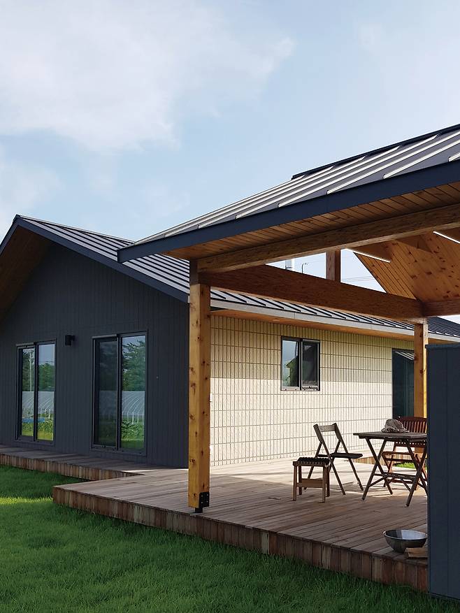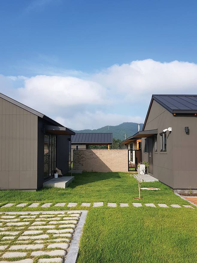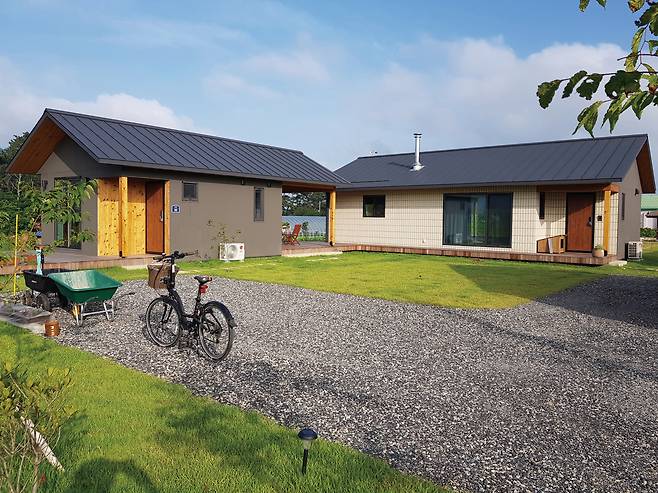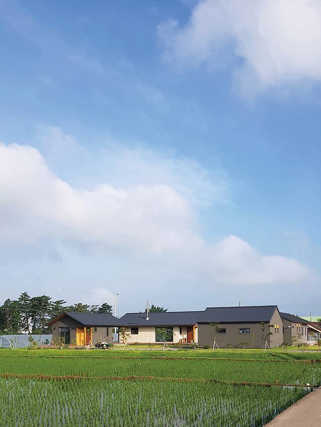 빵집, 창고, 농가주택, 그리고 게스트하우스의 네 개의 건물은 적절하게 그리고 독립된 장소와 공간을 가진다. 각각 열려있는 방향이 서로 다르며 건물과 건물 사이 공간에 조성된 매개 공간, 처마, 데크, 그리고 담장을 통해 적절히 구분되고 연결된다. 특히 안채와 별채 사이의 야외 주방공간은 삶의 공간을 좀 더 외부로 확장하며, 시골 생활에 적합한 여러 기능들을 담아낸다. 창고는 본래 시골 생활에 필수적인 빵집과 주택의 창고의 목적으로 시작했지만 차츰 제3의 중성적 공간으로 자리 잡았다.