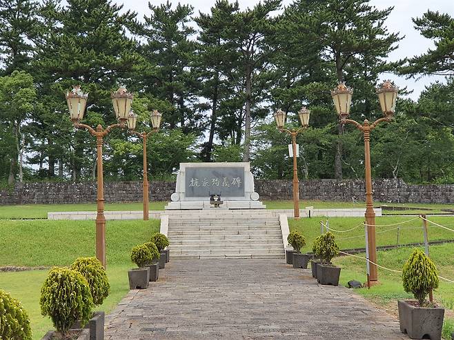 | ▲ 항몽순의비 항몽유적지에서는 삼별초를 기리는 항몽순의비와 기록화 7폭 및 출토된 유물을 볼 수 있다. |