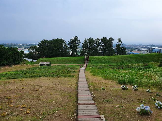 항몽유적지는 집에서 3∼4㎞ 정도 떨어진 곳이어서 평소 자주 가는 편이다. 복원한 토성에도 올라가 보고, 포토존에 철 따라 심는 꽃들을 감상하기 위해 찾기도 했다. 그러던 중 항몽유적지를 둘러싼 토성길을 한 바퀴 돌면 하루 만 보 걷기를 실천할 수 있는 코스가 되지 않을까 하는 생각이 든 것이다.