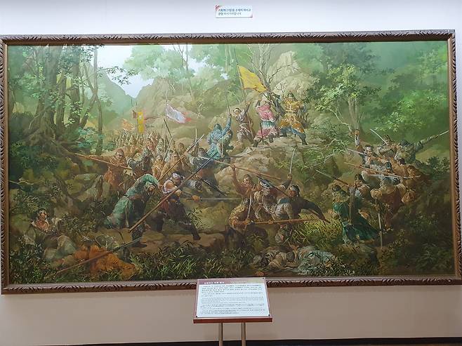 | ▲ 삼별초의 최후혈전 항몽유적지 전시관의 기록화. 여몽연합군에 패해 한라산 붉은오름으로 들어간 삼별초 70여 장수는 혈전 끝에 장렬한 최후를 맞는다. |