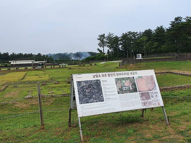 | ▲ 항파두성 내성지 지휘부의 거처였을 것으로 보이는 내성은 둘레 750미터의 직사각형으로 현재 발굴조사 작업중이다. |