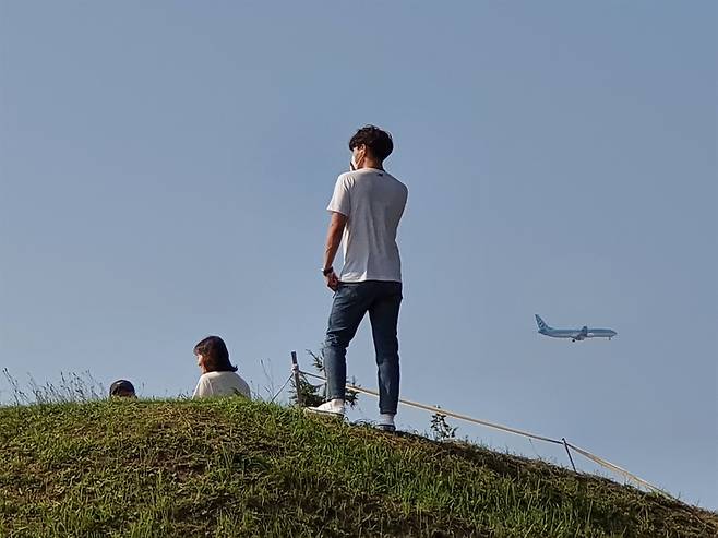 | ▲ 토성과 인생사진 항몽유적지 토성 위에서 비행기가 지나갈 때 인생사진을 찍을 수 있다는 소문이 나면서 청춘남녀들이 많이 찾고 있다. |