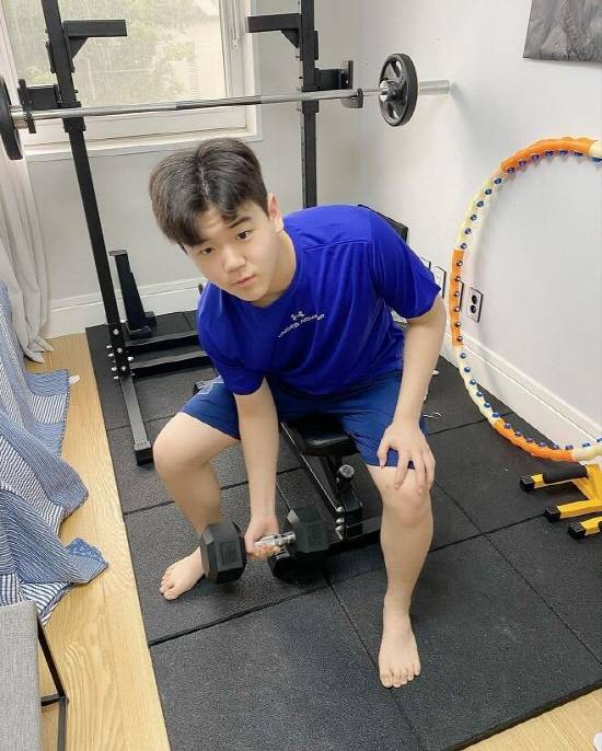 오동통한 어린이 윤후가 근육을 만들기 위해 아령을 드는 모습도 공개돼 놀라움을 자아냈다.