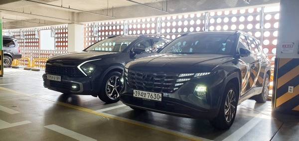 이 때문에 차이를 느끼기 어려울 정도로 스포티지와 투싼의 주행질감과 주행성능이 비슷하다. 유일하게 다른 것은 변속기 레버 형태로 스포티지는 다이얼 타입이, 투싼은 버튼 타입이 적용됐다.