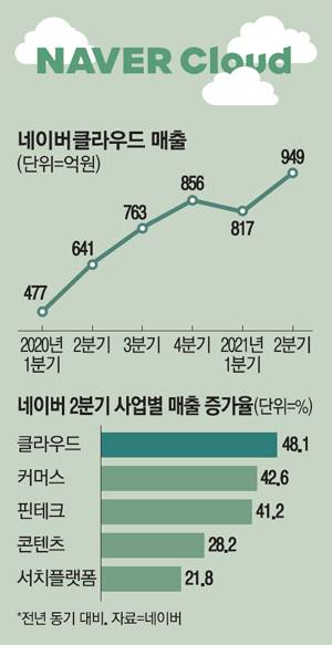 네이버 클라우드 사업이 급성장하고 있다. 네이버클라우드는 2017년 출사표를 던진 후발주자다. 아마존(AWS), 마이크로소프트, 구글, IBM 등 글로벌 빅테크 공룡들이 국내 클라우드 시장을 장악하기 위해 각축을 벌이는 동안 큰 존재감이 없었다. 하지만 최근 들어 매년 클라우드 부문 매출을 2배씩 늘리고 기술력을 키우면서 확실한 토종 대항마로 주목받고 있다.