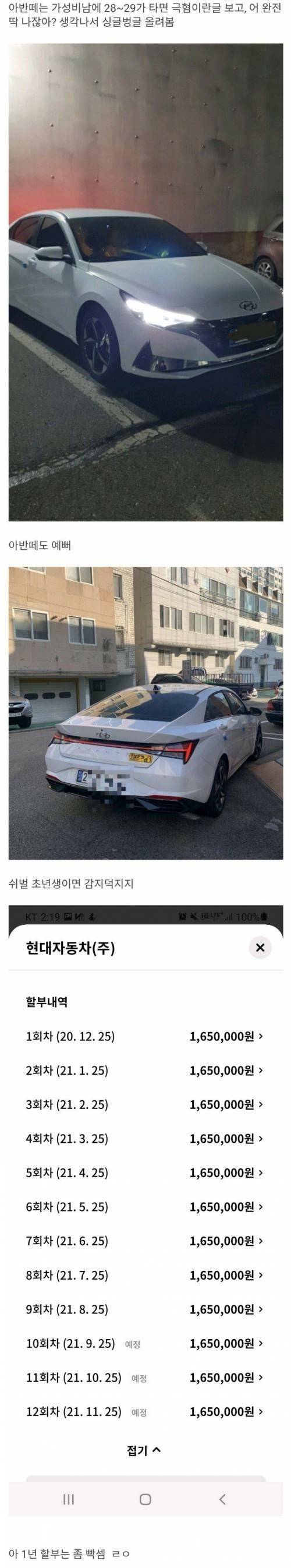 지난 18일에도 자동차 커뮤니티에 비슷한 글이 올라왔다. 20대 차주가 현대차 아반떼를 구입한 후 12개월로 할부를 갚고 있다는 내용이다.