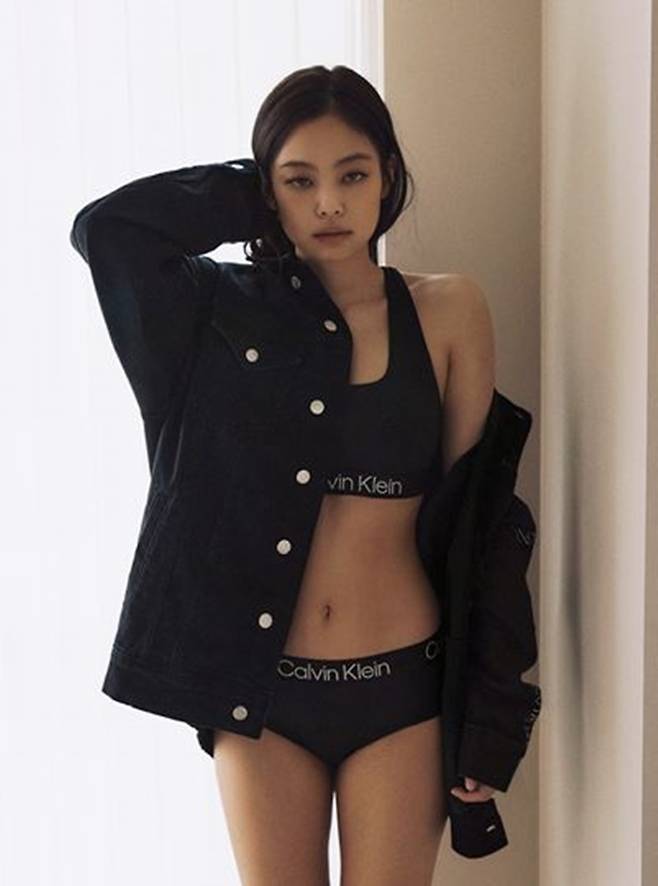 제니는 캘빈클라인 이너웨어와 함께 한 2021 가을 화보에서 간결한 실루엣이 돋보이는 스타일을 감각적으로 표현했다.