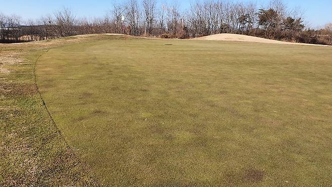그린이 살짝 얼어 있었습니다. 그린을 벗어날 정도로 튀진 않지만 그린 스피드는 다소 느린 편이었습니다.