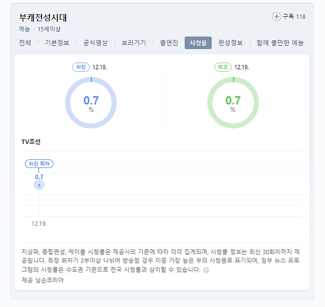 한 포털 사이트 클립 영상은 2만 7천여 조회수를 기록, 댓글은 5개, 시청률 역시 0.7% 입니다.