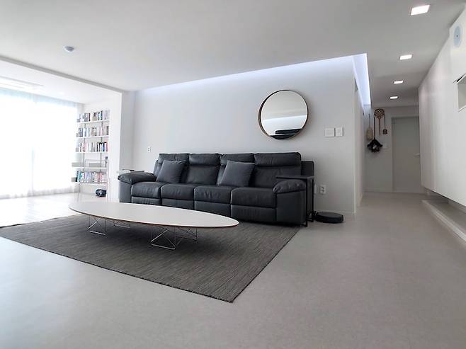 매일 시간 예약 설정해놓고 자동으로 하루 두 번 청소를 시키는데 46평이라 좀 많이 오래 걸리지만 나름 만족스럽게 잘 청소해줘요. 외출할 때 켜고 외출하면 청소요정이 바닥을 뽀송하게 유지시켜줘요 :-)
