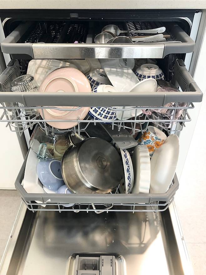 저는 평소에 설거지할 때도 마른 행주로 닦아주거나 하는 꼼꼼함이 없는 사람이라 그런지, 제 수고 없이도 그냥 깨끗하게 씻긴 그릇들을 보면 행복해져요♡