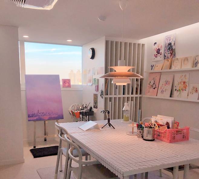 저는 미술을 전공하고 전시 기획, 예술 행정 쪽 일을 하다가 아이 낳고 키우면서 원래 하던 일은 그만두었고 몇 년 전부터 다시 조금씩 그림을 그리고 있어요. 인스타나 블로그를 통해서 인테리어, 그림, 살림살이 등을 공유하고 있답니다.