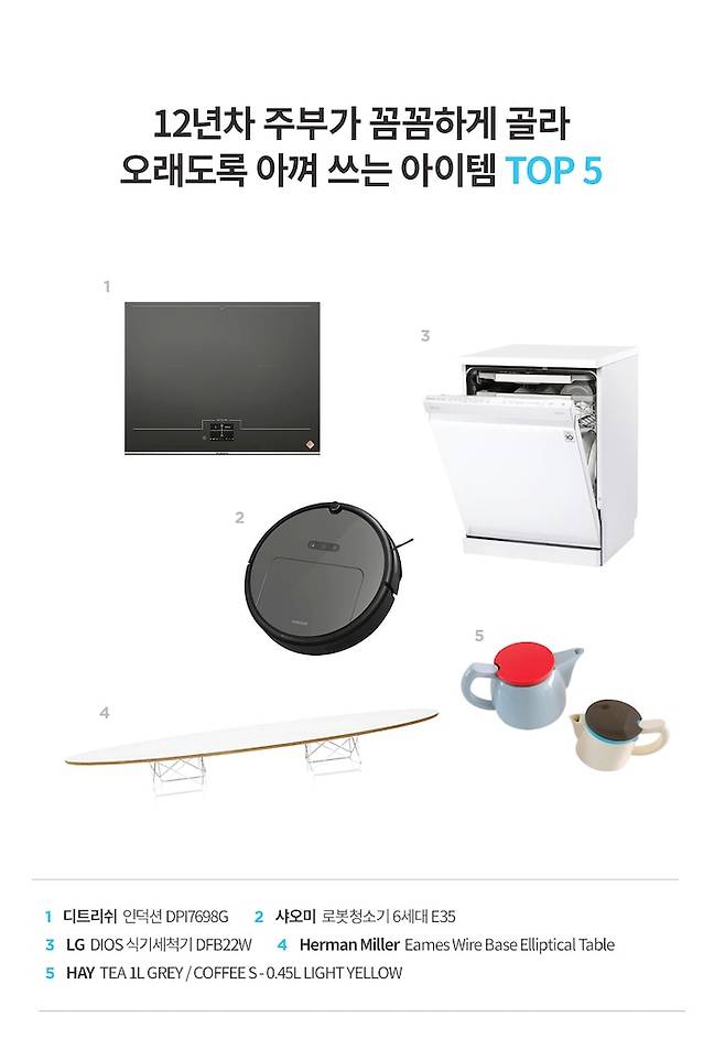 10여년 전부터 화이트하고 심플하고 모던한 살림을 좋아했는데, 가진 게 없는 신혼부부에게는 이상과 현실의 갭이 클 수 밖에 없었죠. 그래서 최대한 가성비 좋은 물건을 사서 썼었는데, 실제 써보니 우리 부부는 물건을 자주 바꾸는 편도 아니고 고장도 잘 안 내고 싫증도 크게 내지 않아서 한 물건을 오래 쓰는 편이더라구요.