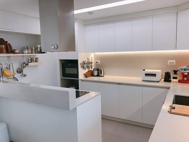 주방에 있는 잡다한 것들을 가리기 위해서 아일랜드 쪽에 한 뼘 정도 되는 벽을 만들었는데요. (한 뼘이 주는 위안이랄까요☺️)