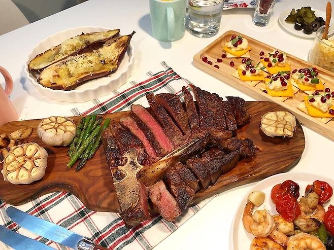 두꺼운 티본 스테이크도 불맛나게 잘 구울 수 있고요.