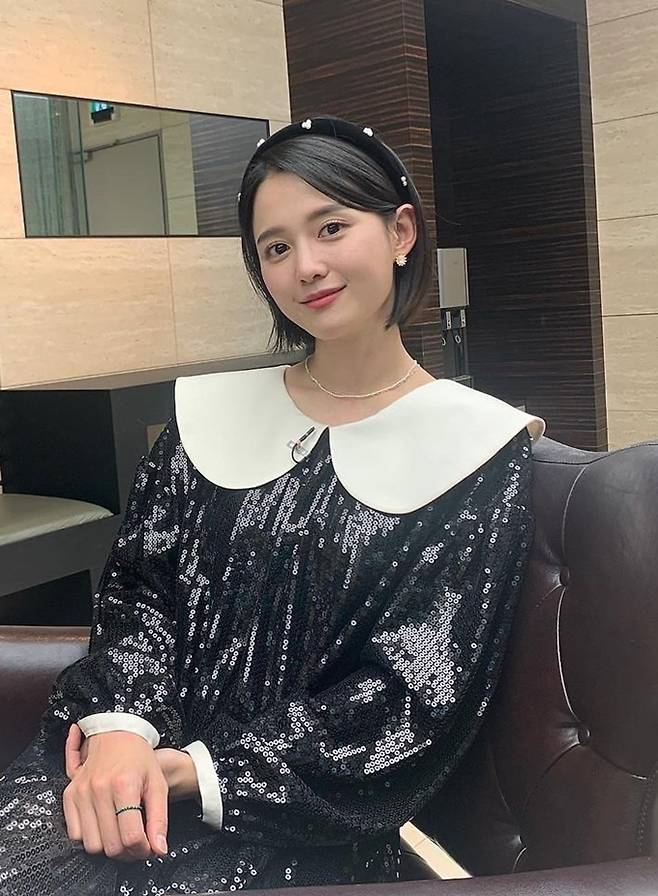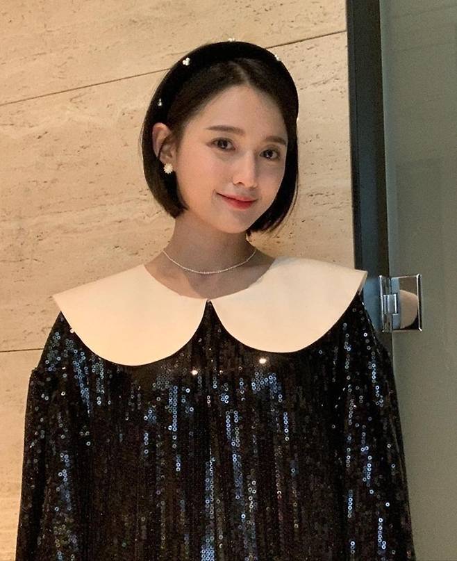 공개한 사진에서 남보라는 숏컷 헤어에 스팽글 장식의 빅카라 블랙 원피스룩으로 귀엽고 사랑스러운 모습을 연출했다.